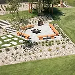 Areál má terasu i pokoje s pohovkou, přístrojem na přípravu kávy a čaje, místností na posezení. Má kompletní kuchyni a koupelnu s samostatnou toaletou, vanou a sprchou.